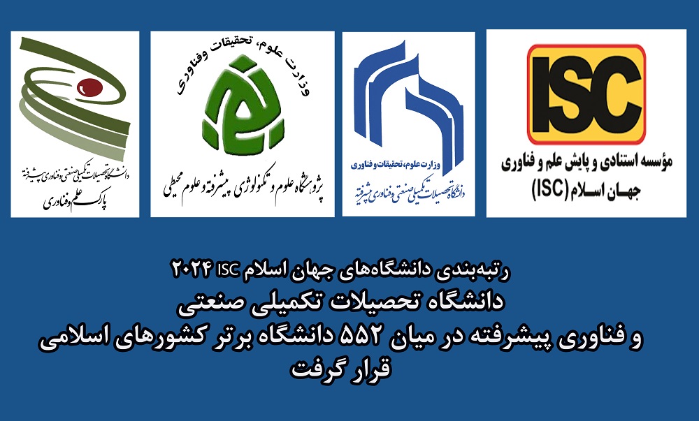 دانشگاه تحصیلات تکمیلی صنعتی و فناوری پیشرفته در میان ۵۵۲ دانشگاه برتر کشورهای اسلامی قرار گرفت.