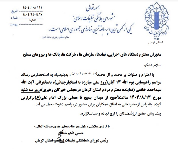 ٠٩:١٠ - دوشنبه ١٢ آبان ١٤٠٤ / عدد : ٥٥٤٣ / تعداد نمایش : ٦١ |